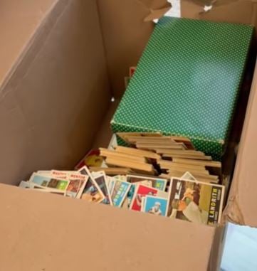 , our Vice President, John, began the process to review the collection. The retail stores are focused on selling modern products and simply don't have the time or the knowledge to carefully evaluate vintage collections like this. This is where we are happy to help you! We have purchased thousands upon thousands of collections and bought and sold over 50 MILLION dollars in cards. After receiving images of the collection, we knew that David owned vintage Topps baseball cards from the 1957, 1958, and 1959 sets. At Just Collect, we offer many ways to evaluate and purchase your collection including meeting you at our store here in Summit, NJ., at a show or convention such as The Philly Show, and we do travel for large, high-end collections. David opted to SHIP his collection to our store, but he missed one very important tip we always provide: How to package your cards for shipping.