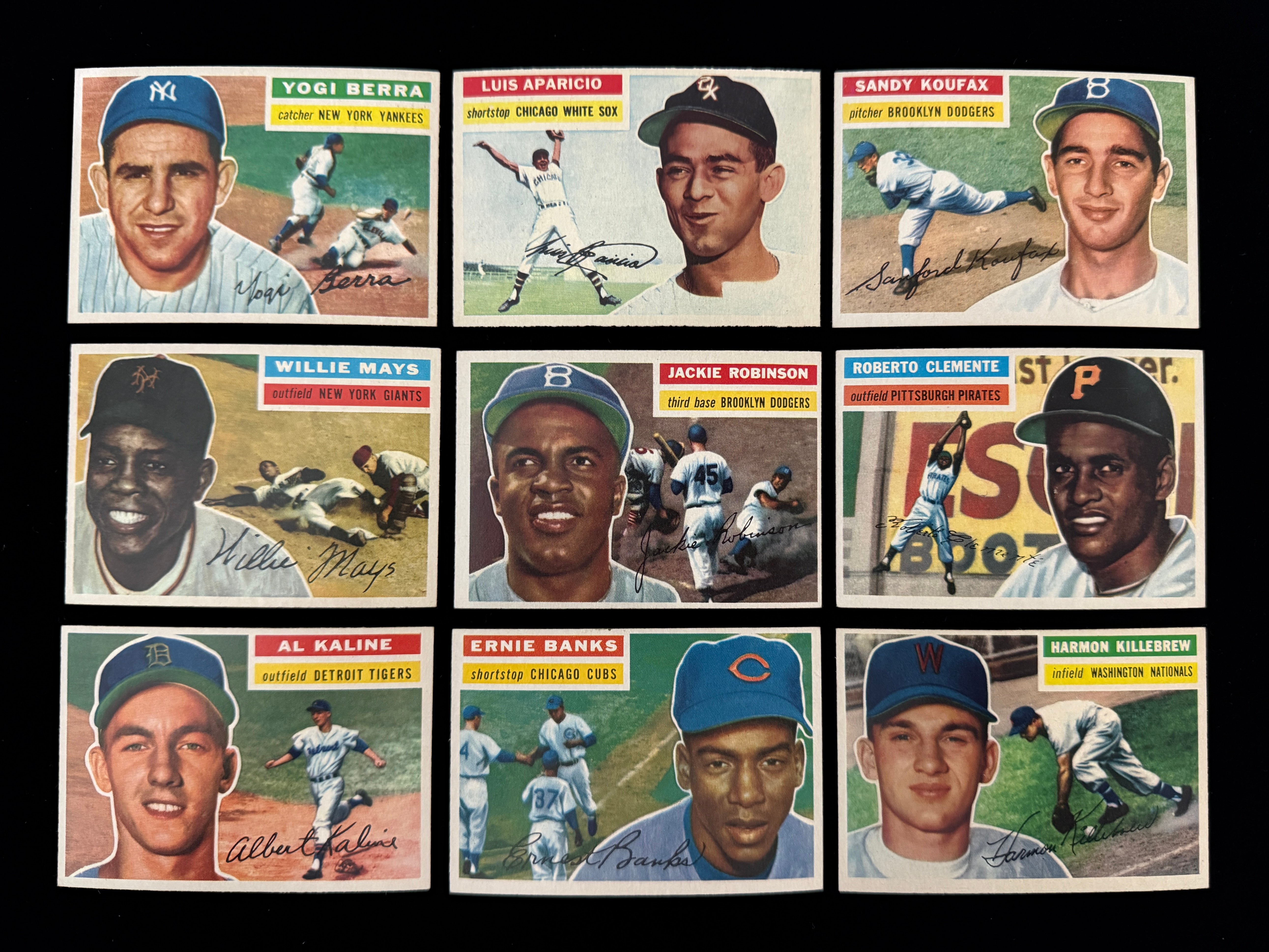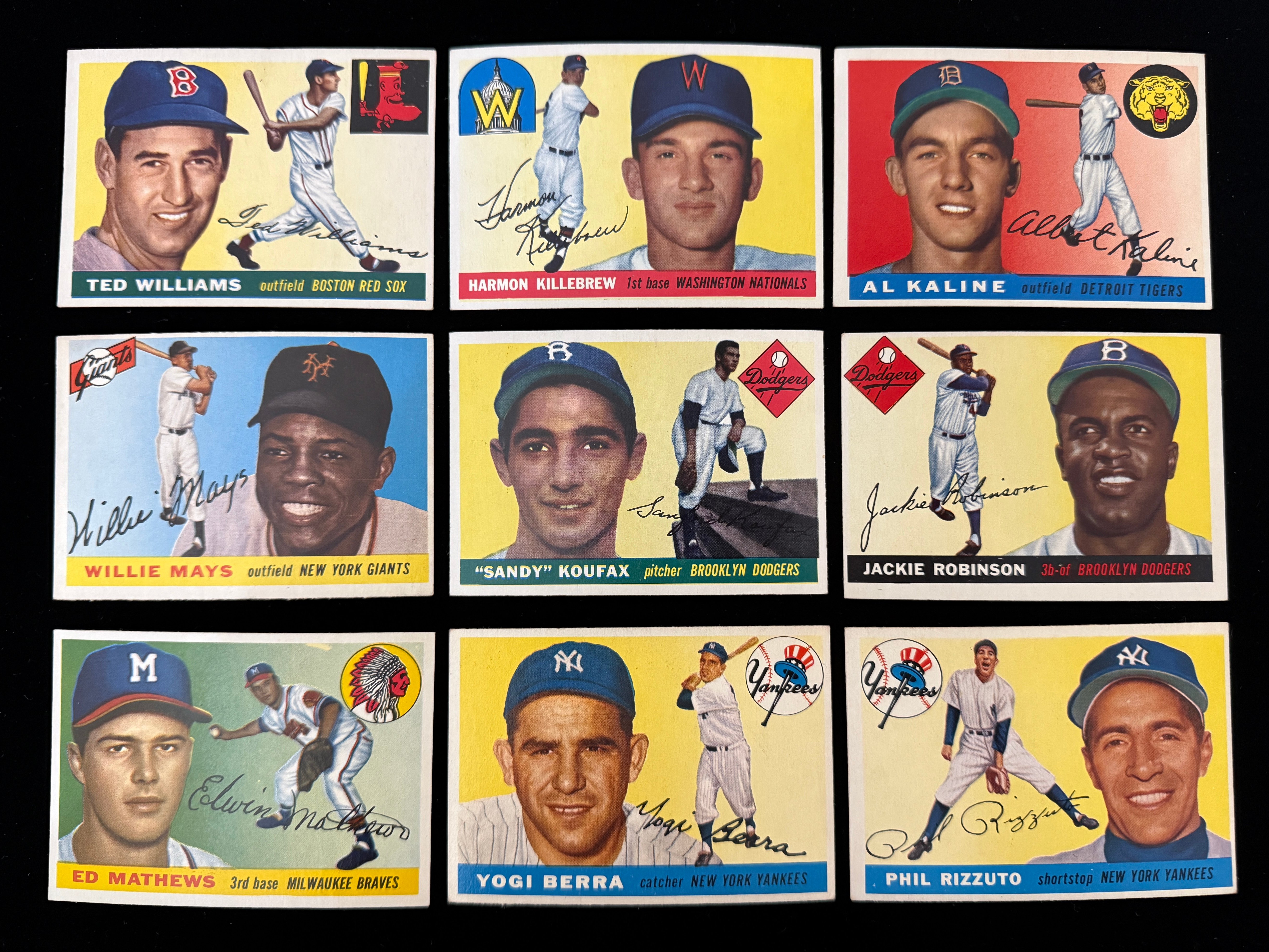 While Jeff's dad couldn't find every card in the sets, he had all the key names including Jackie Robinson, Willie Mays, Ted Williams, and Ernie Banks. The card standing out is the Sandy Koufax rookie.
